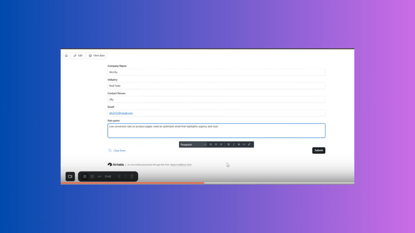 Watch how our tool converts a simple input (Company Name + Pain Point) into a full professional cold email.